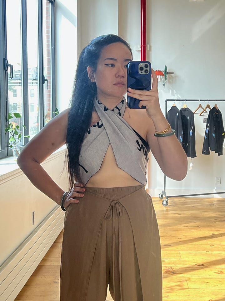Each of these pieces — the cardigan, the scarf, the jewelry, the ceramics — were designed from a very special short story written by Shaina Yang for this season of Chores. I realized just last week that the short story was actually so central to our process — that we kind of forgot to tell anyone else about it??