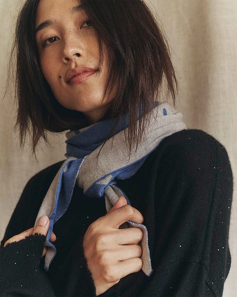 I’m especially pleased with how well the yarn works in this knit construction — we used a 100% extra fine Italian merino wool with a low pilling score, and in this specific scarf construction, it is very light yet warm, soft yet hardwearing. Love a touch of low-maintenance luxury!