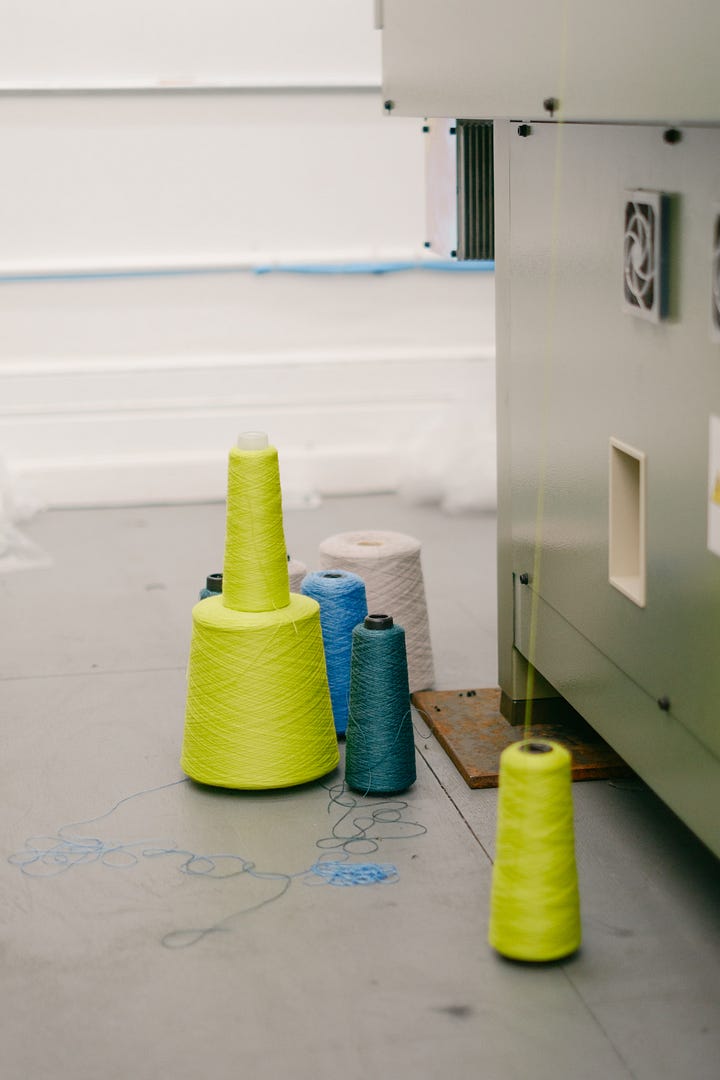In March, I had a somewhat crazy idea: “what if I made my embroidered chore coat into a knit?” It’s a deceptively simple task — to capture the essence of one very specific object in a completely different form. I worked with a lovely local knitting factory to bring this idea to life, convincing them one step at a time to try something strange and new.